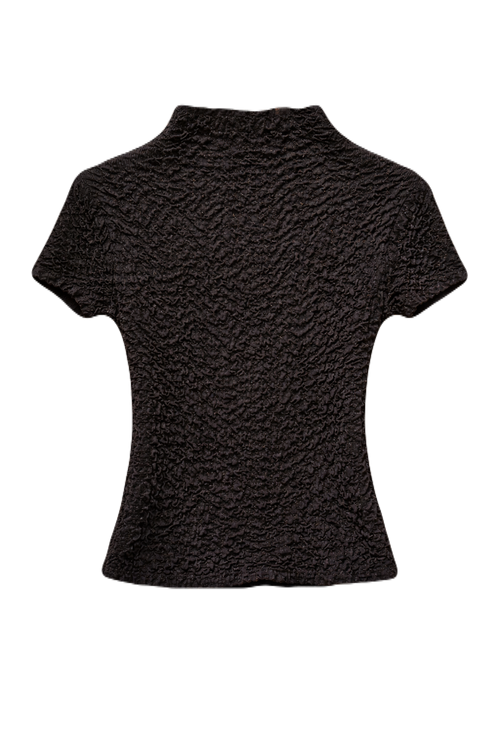Black Textured Mock-Neck Top