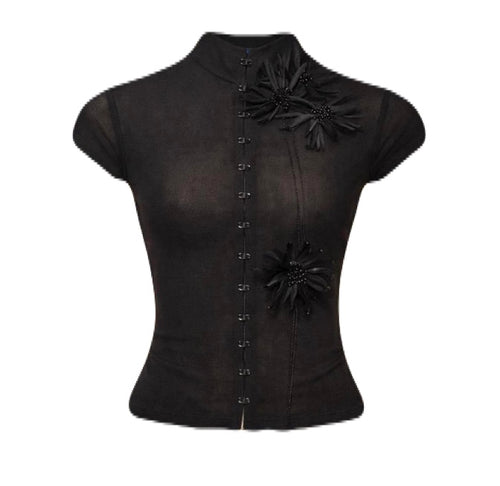 Black Sheer Mock Neck Top